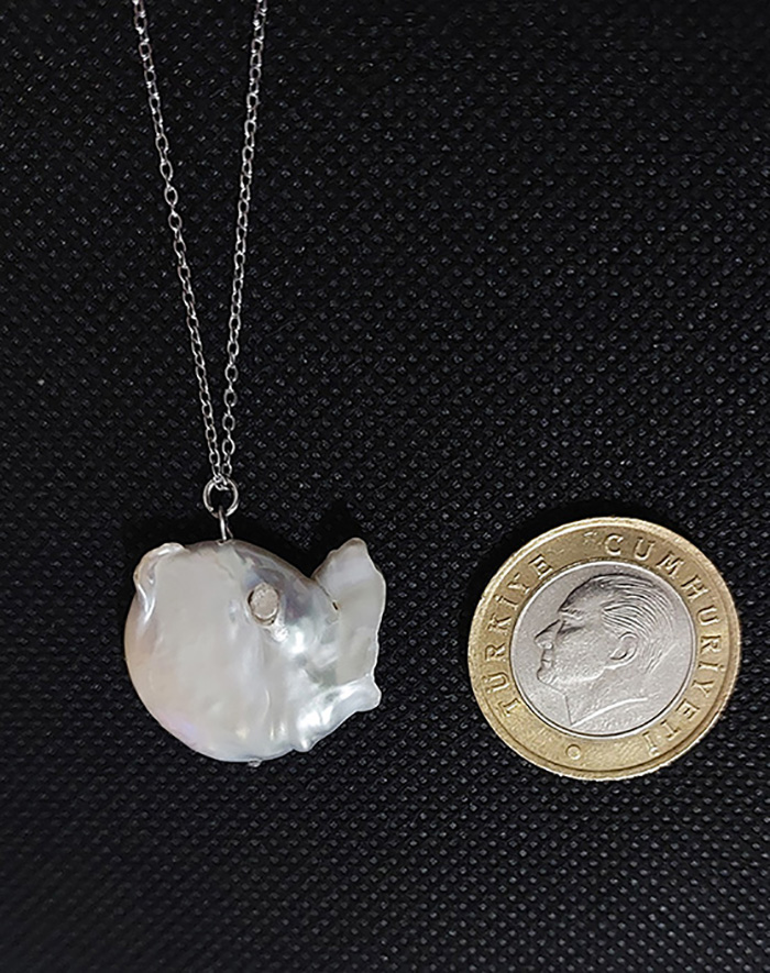 - * Şık Tasarım: Barok şeklindeki inci, kolyeye zarif bir görünüm kazandırır.