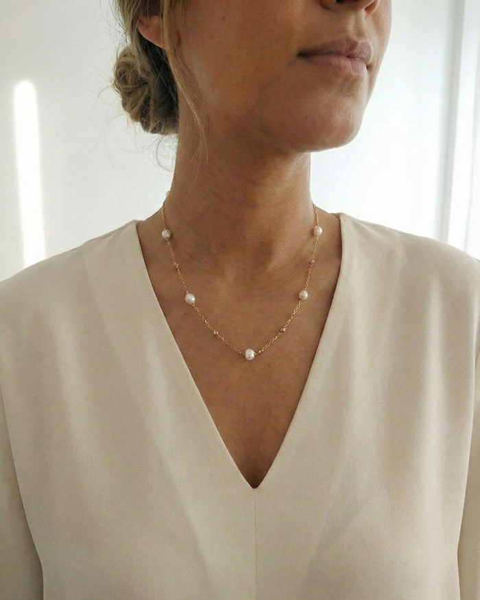 Altın Işıltısı ve İnci Zarafeti: Kısa Dorika Kolye