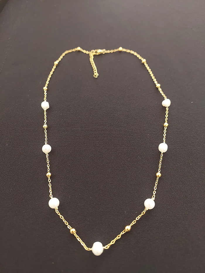 • Zengin Görünüm: Gold rengi zincir ve aralara serpiştirilen kesimli dorika topları, kolyeye mücevher parlaklığı kazandırır.